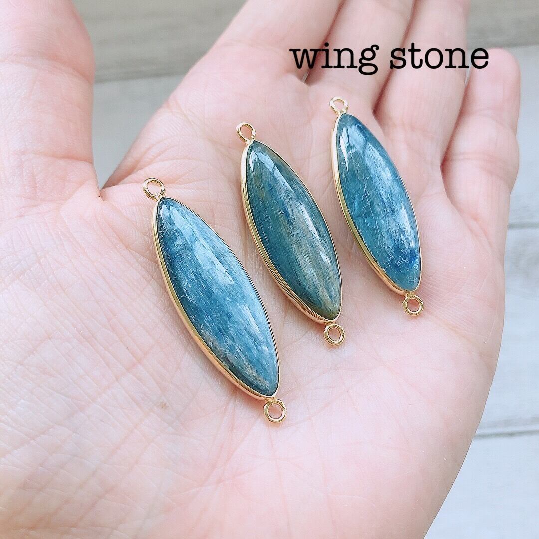 カイヤナイトは、濃いブルー、青、水色、ホワイトの結晶がストライプ状(層のように)重なり合っていて、光や角度によって見えるグラデーションが美しいのが特徴です。キズのように見える箇所は薄い層になっている部分で天然石の特徴になります。