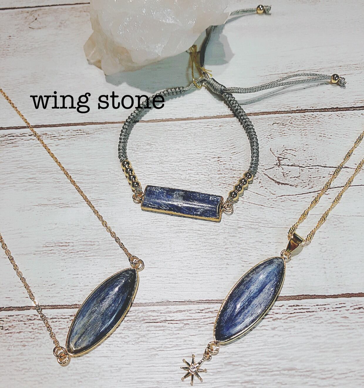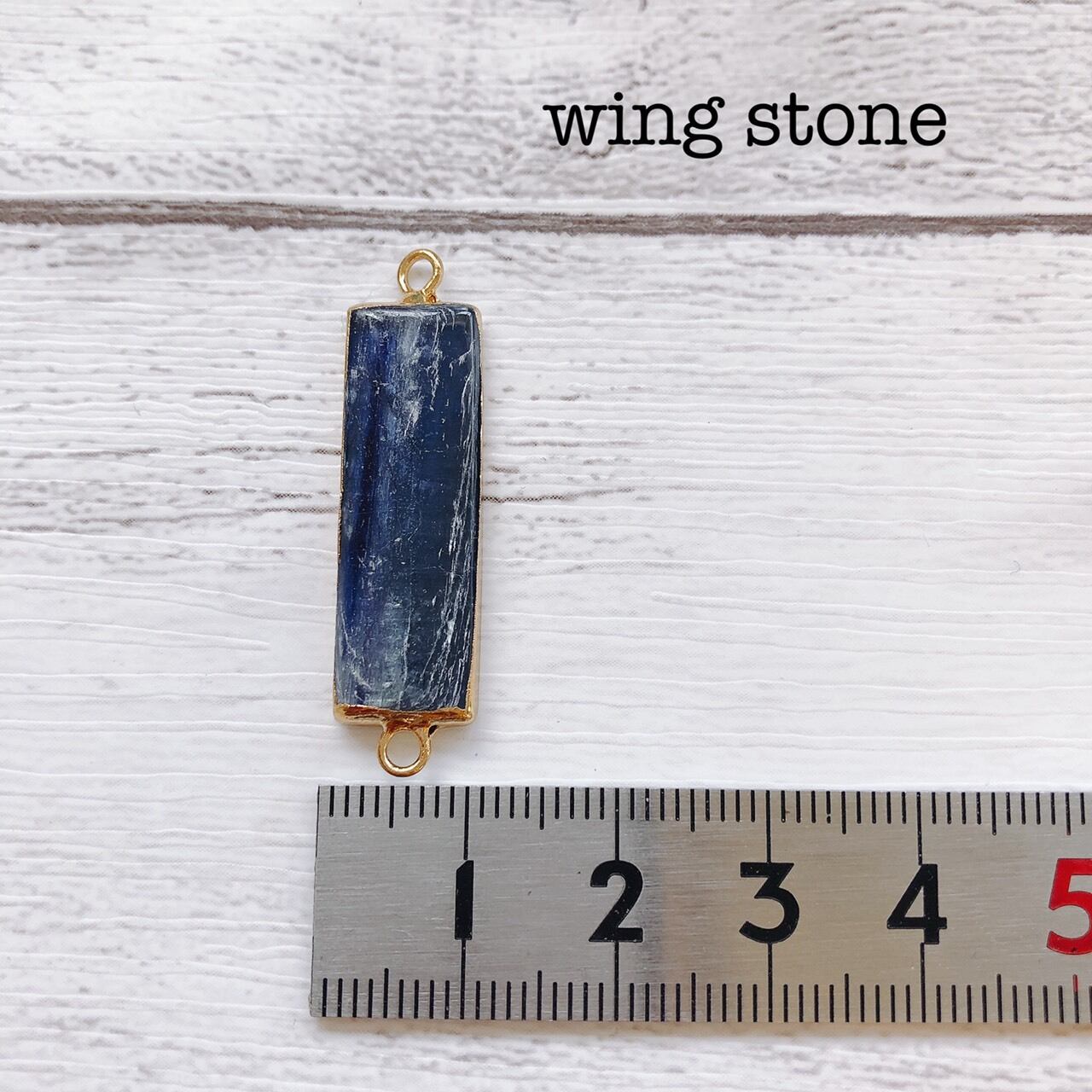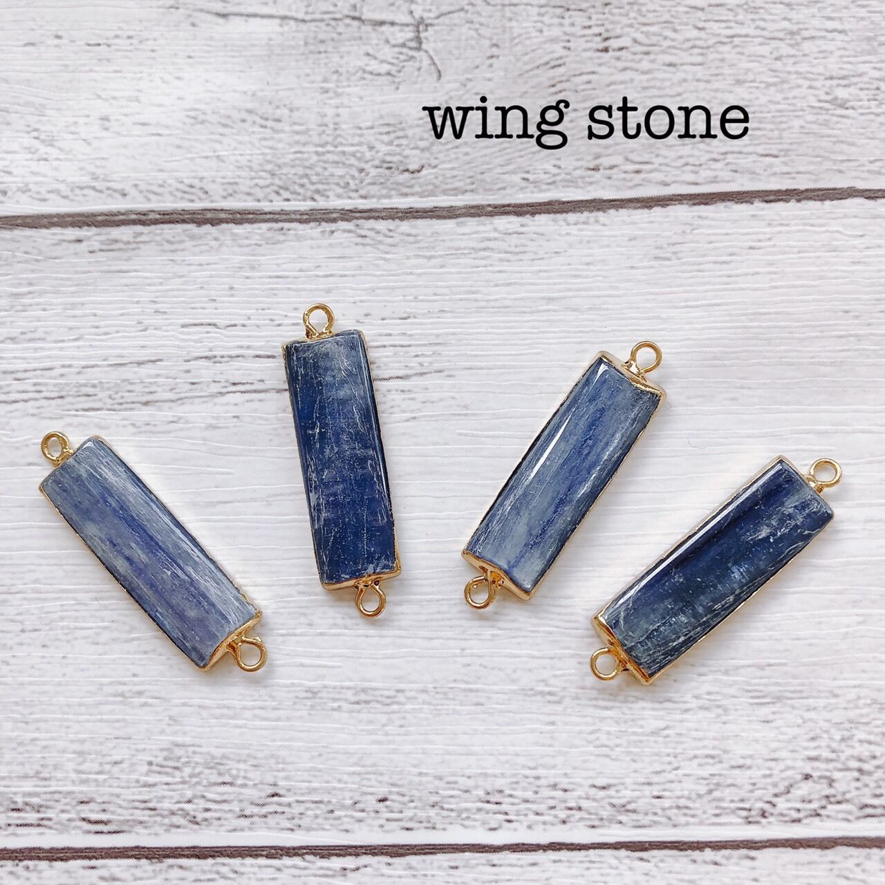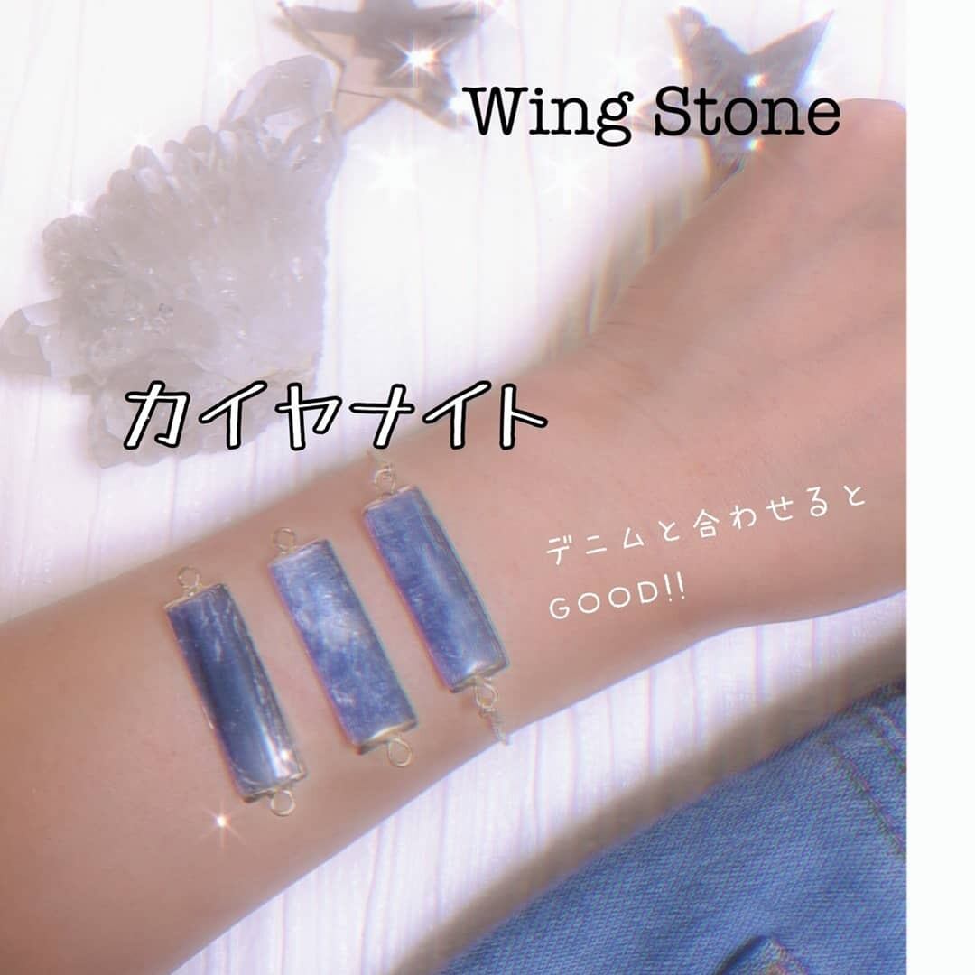 カイヤナイトは、濃いブルー、青、水色、ホワイトの結晶がストライプ状(層のように)重なり合っていて、光や角度によって見えるグラデーションが美しいのが特徴です。キズのように見える箇所は薄い層になっている部分で天然石の特徴になります。