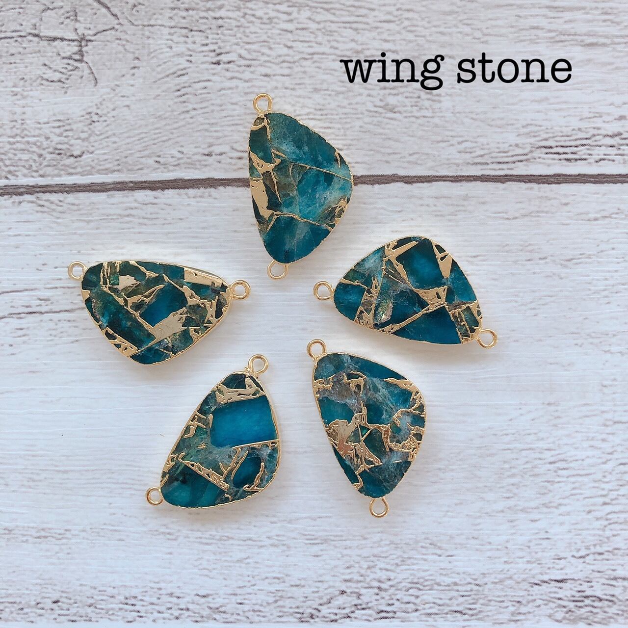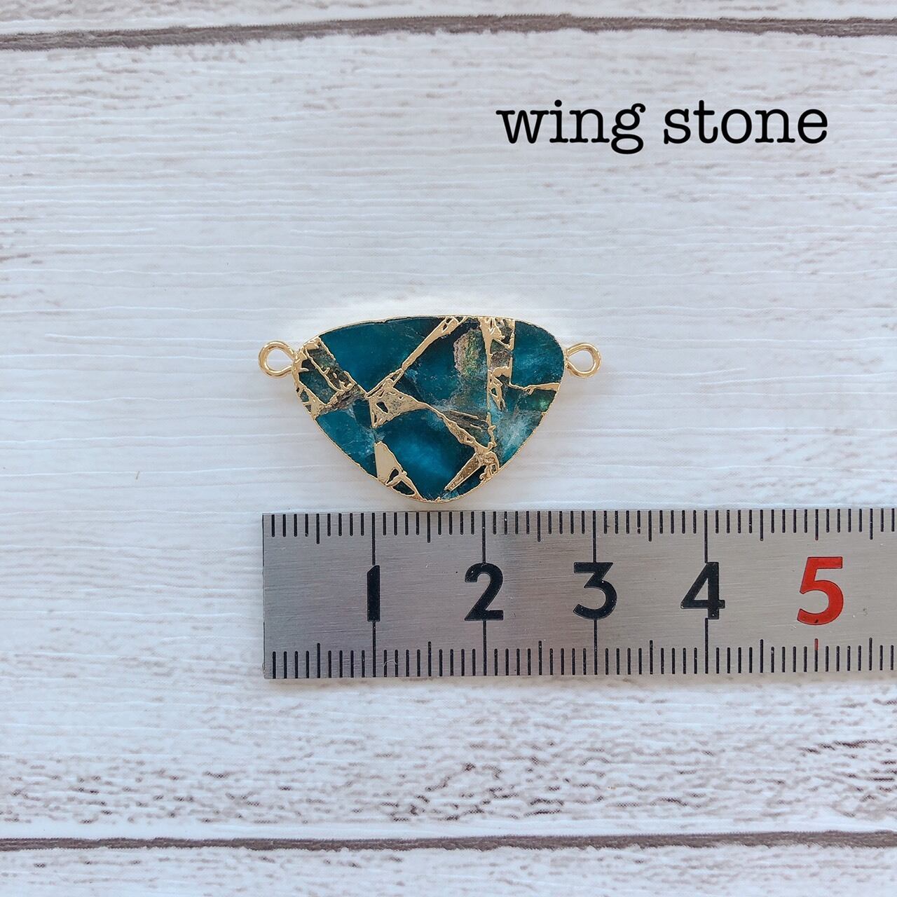 エメラルドを加工した天然石。透明感のあるグリーンと上品なゴールドで仕上がった上品で個性的なパーツです。