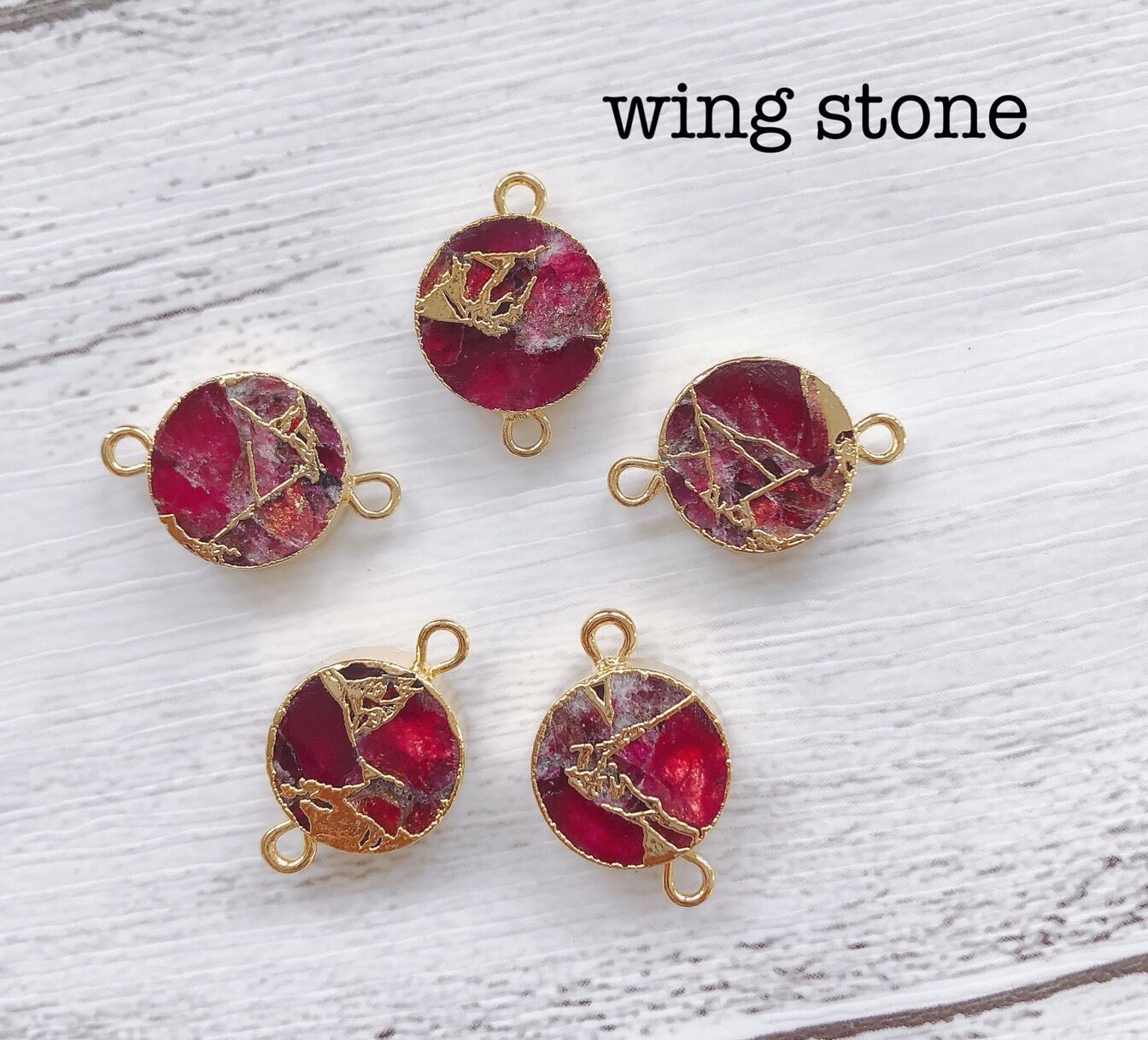 ガーネットを加工した天然石。透明感のあるガーネットカラーと上品なゴールドで仕上がったパーツです。