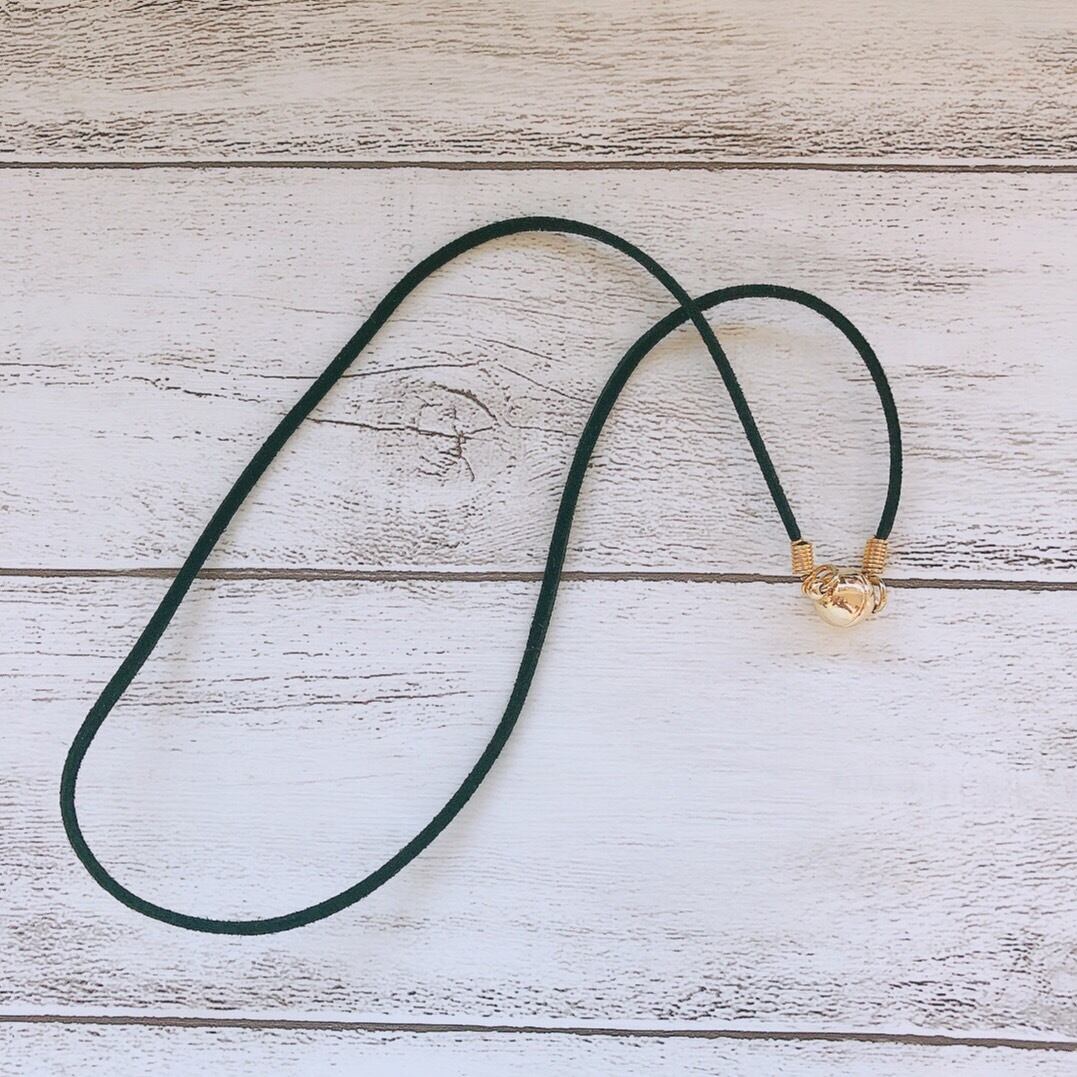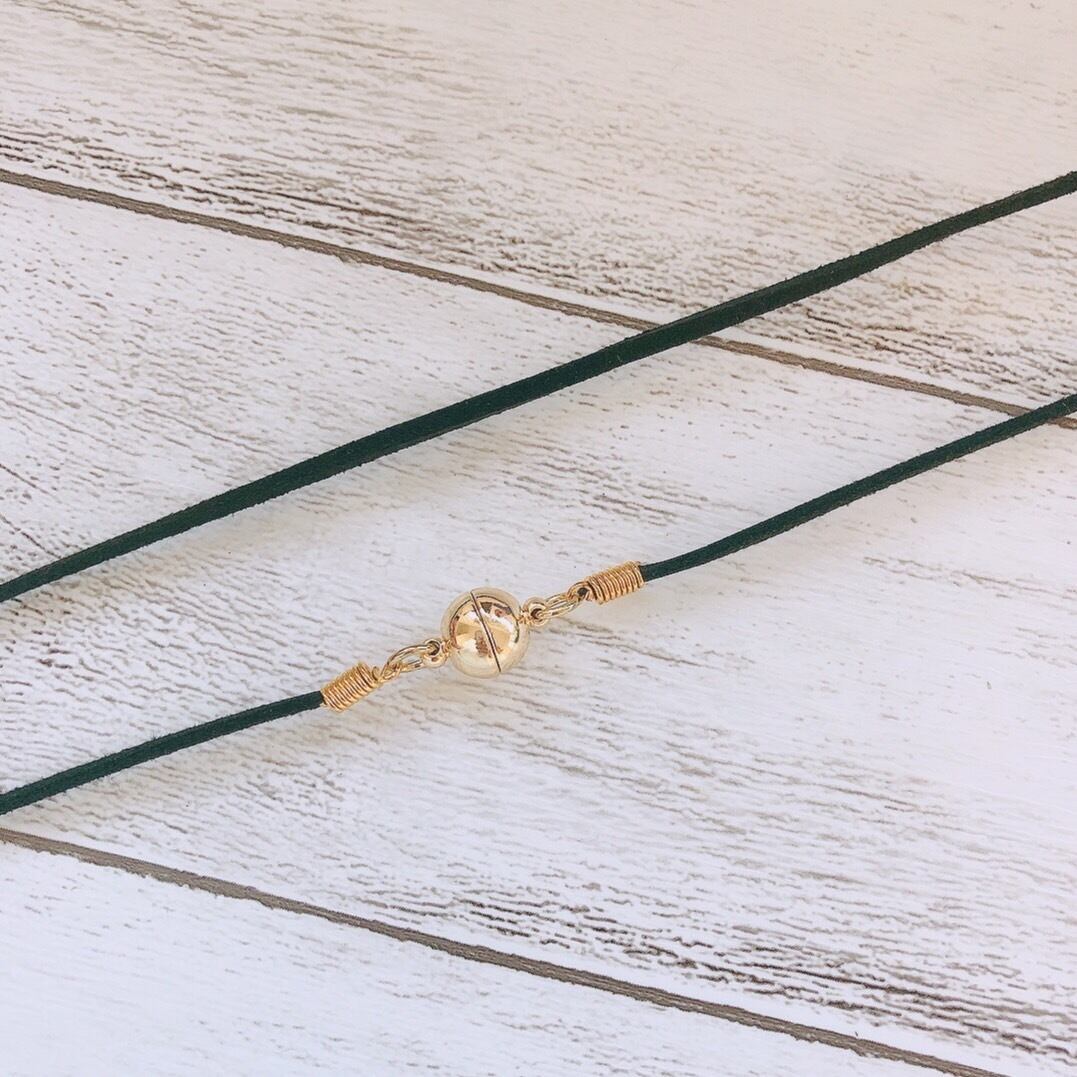 ブラックの革ひもと、ネックレスの装着部分はマグネットタイプになっています。