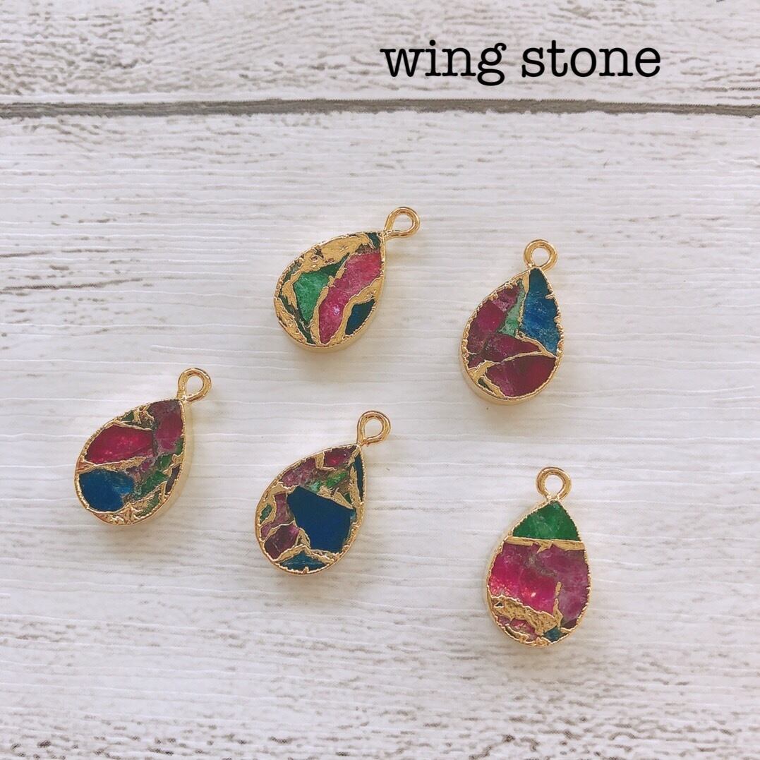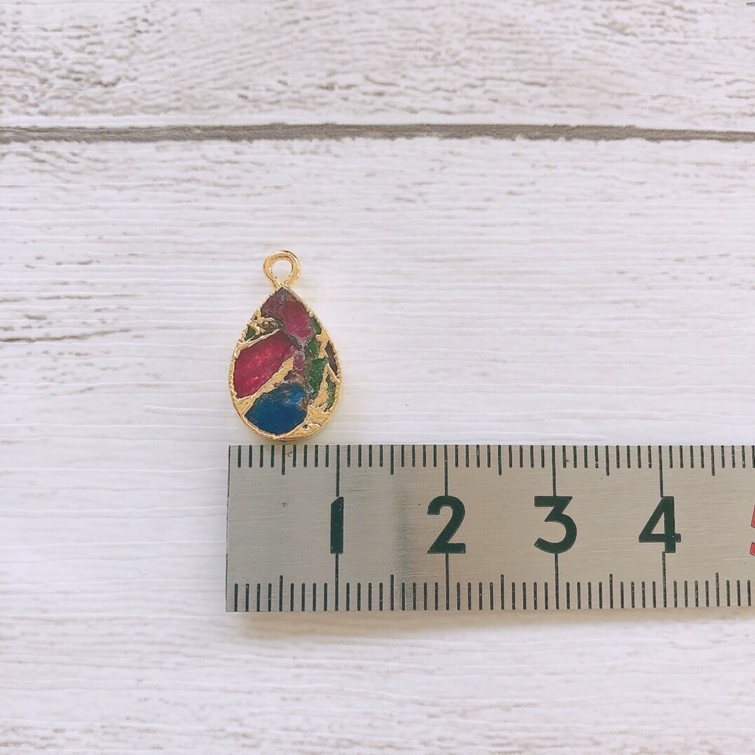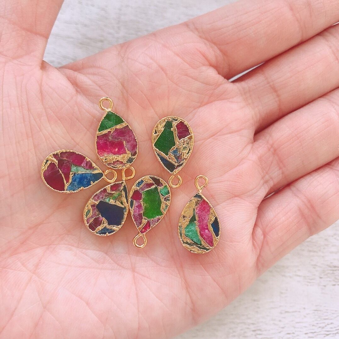 透明感のある3種類の天然石と上品なゴールドで仕上がった上品で個性的なパーツです。
