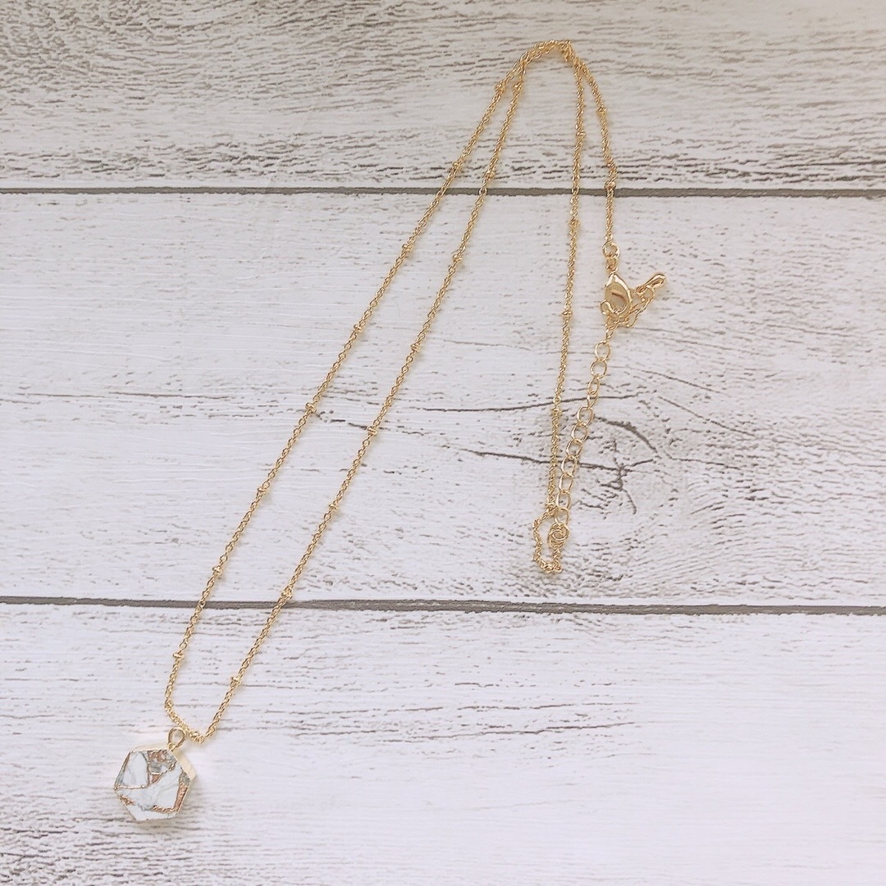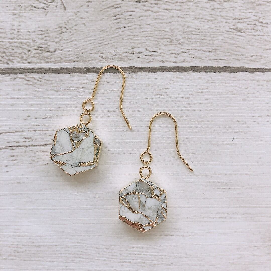 ヘキサゴン型 ホワイトターコイズ×24kゴールドエレキトロメッキ加工
