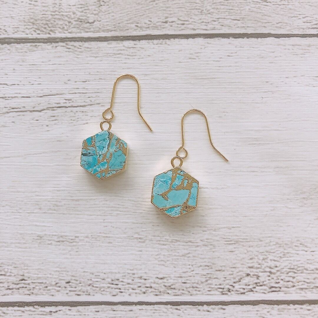 ヘキサゴン型 ターコイズ×24kゴールドエレキトロメッキ加工