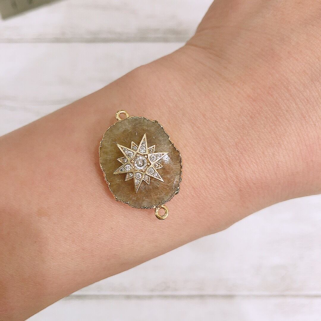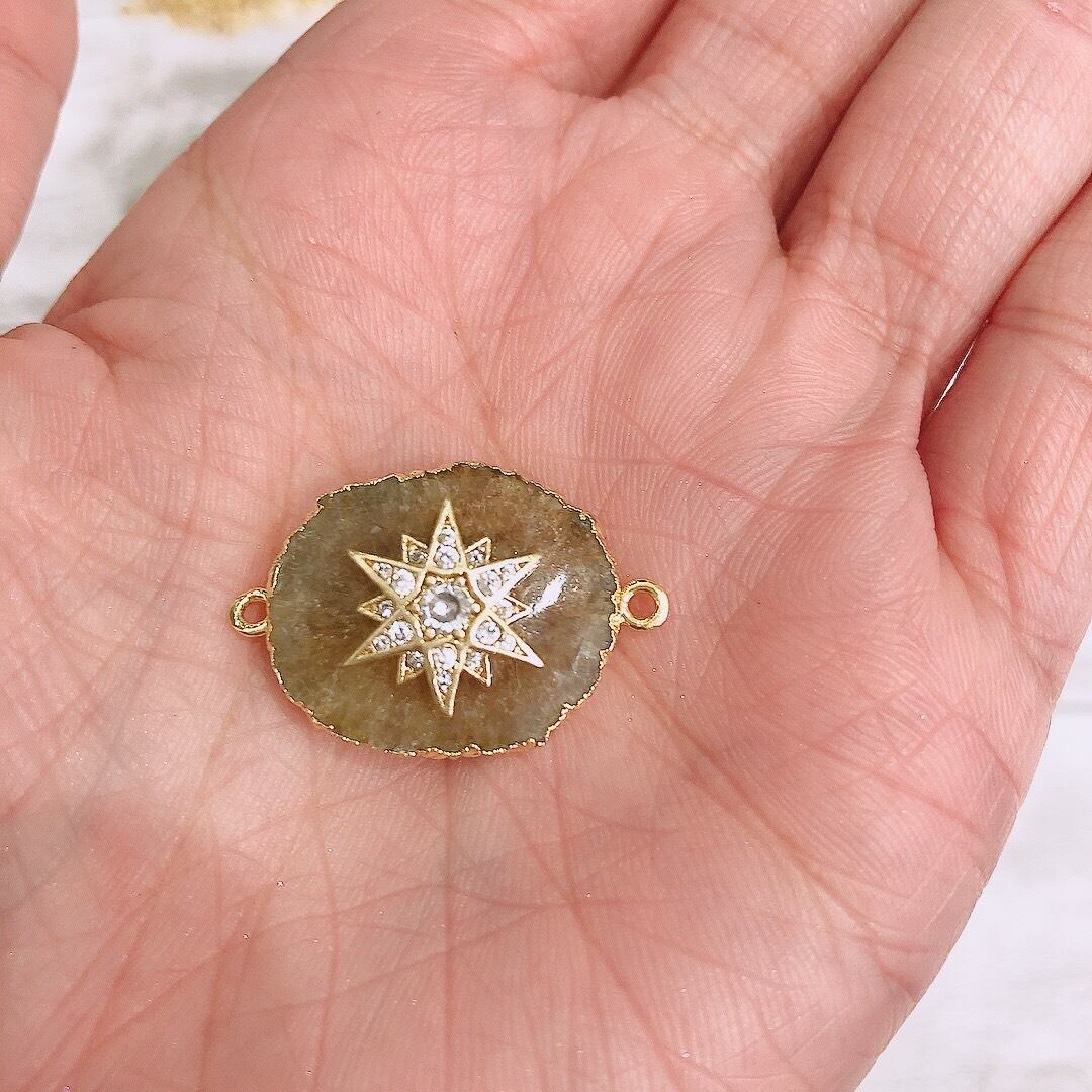 ソーラークォーツは、形が太陽のように見え中央の瑪瑙の部分から水晶の結晶が太陽光線のように広がり光の当たる角度によってキラキラと色を変化させるとても美しい天然石です。