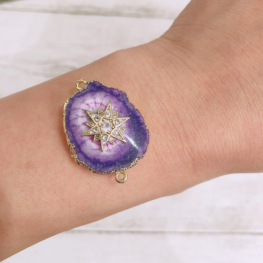 ソーラークォーツは、形が太陽のように見え中央の瑪瑙の部分から水晶の結晶が太陽光線のように広がり光の当たる角度によってキラキラと色を変化させるとても美しい天然石です。
