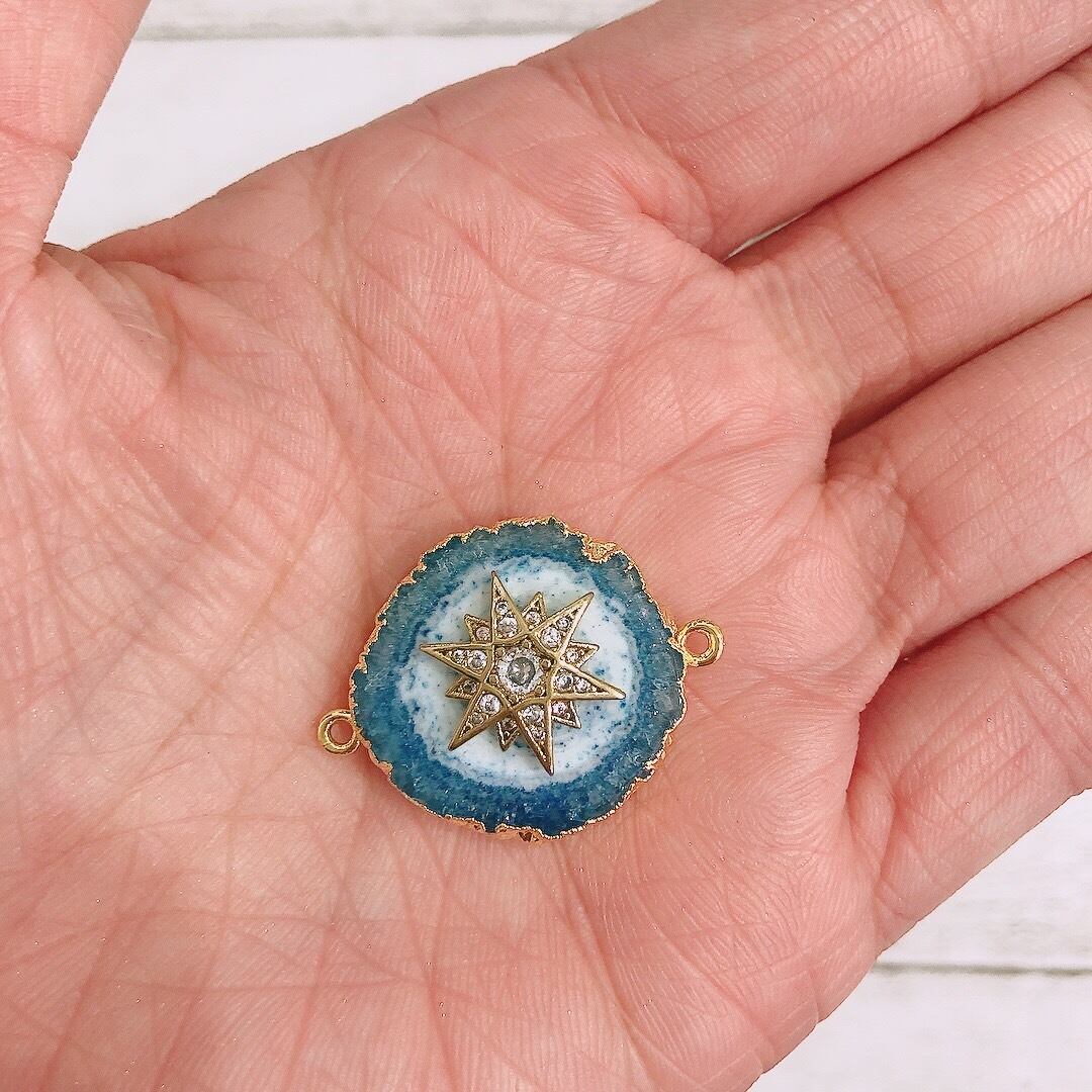 ソーラークォーツは、形が太陽のように見え中央の瑪瑙の部分から水晶の結晶が太陽光線のように広がり光の当たる角度によってキラキラと色を変化させるとても美しい天然石です。