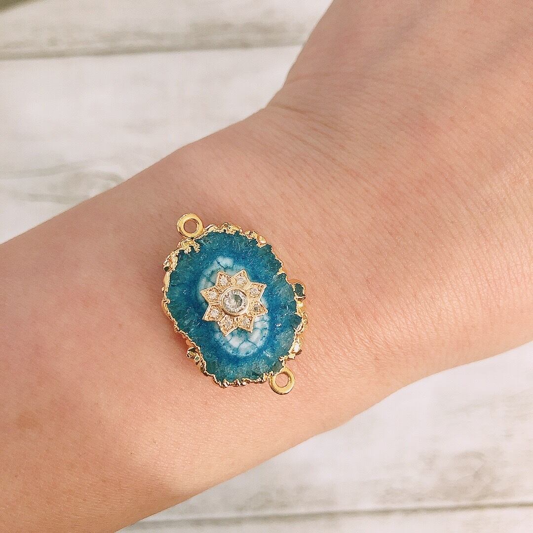ソーラークォーツは、形が太陽のように見え中央の瑪瑙の部分から水晶の結晶が太陽光線のように広がり光の当たる角度によってキラキラと色を変化させるとても美しい天然石です。