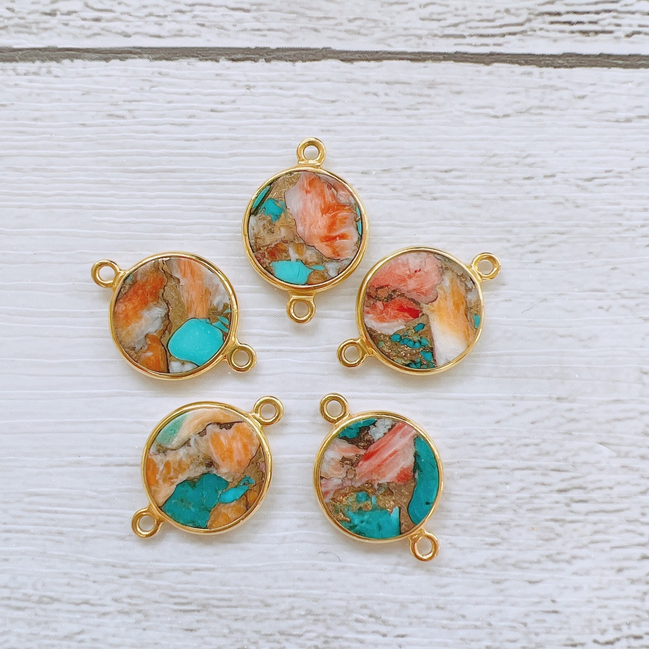 トロピカルな色合いでありながら派手さは控えめでフレッシュな印象で、コッパーシリーズでも人気の高い天然石パーツです。