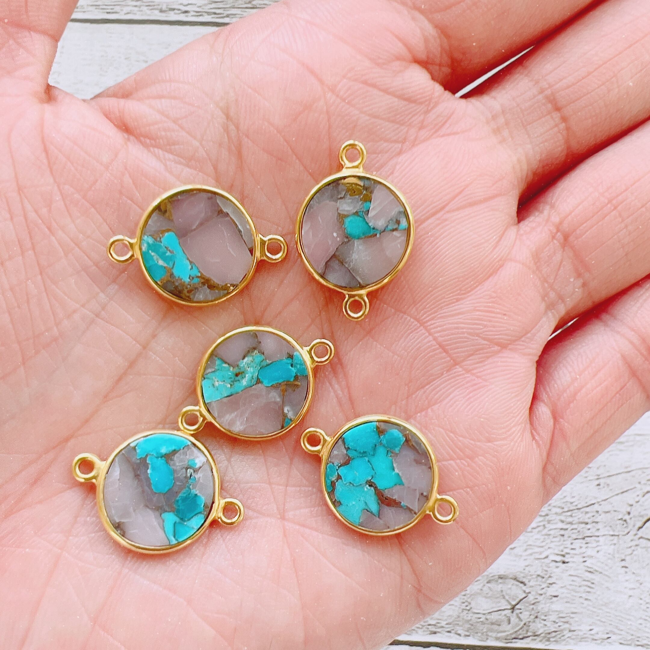 天然石と、コッパー(銅)などの金属を細かく砕き、圧縮して再生成したコンポジットストーンです。 味わい深い風合いと、品のあるデザインがアクセサリーパーツとしてとても人気です。