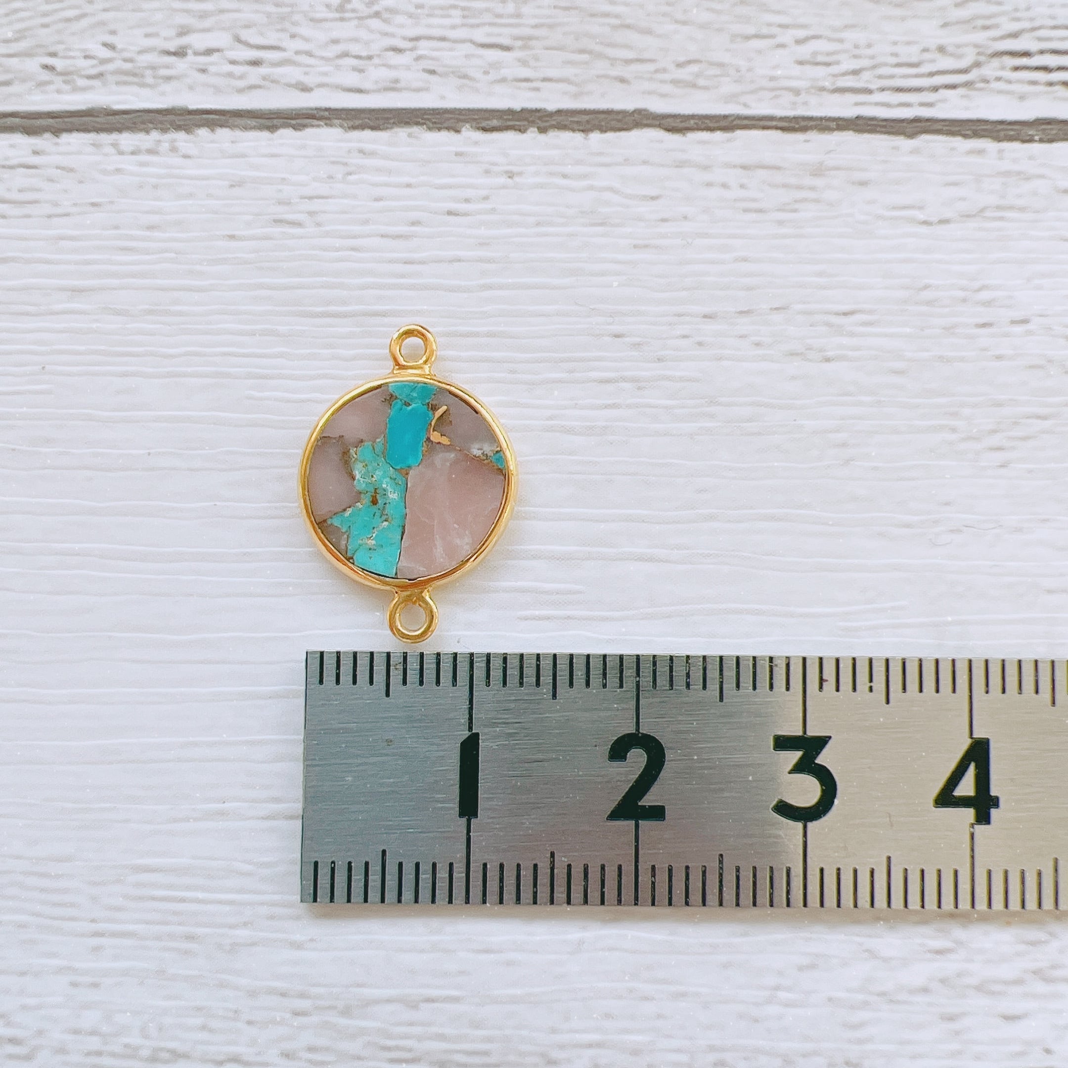 柔らかい色合いのピンクとホワイトがとても優しい印象を与えてくれ、爽やかなターコイズブルーが映える天然石パーツになっています。