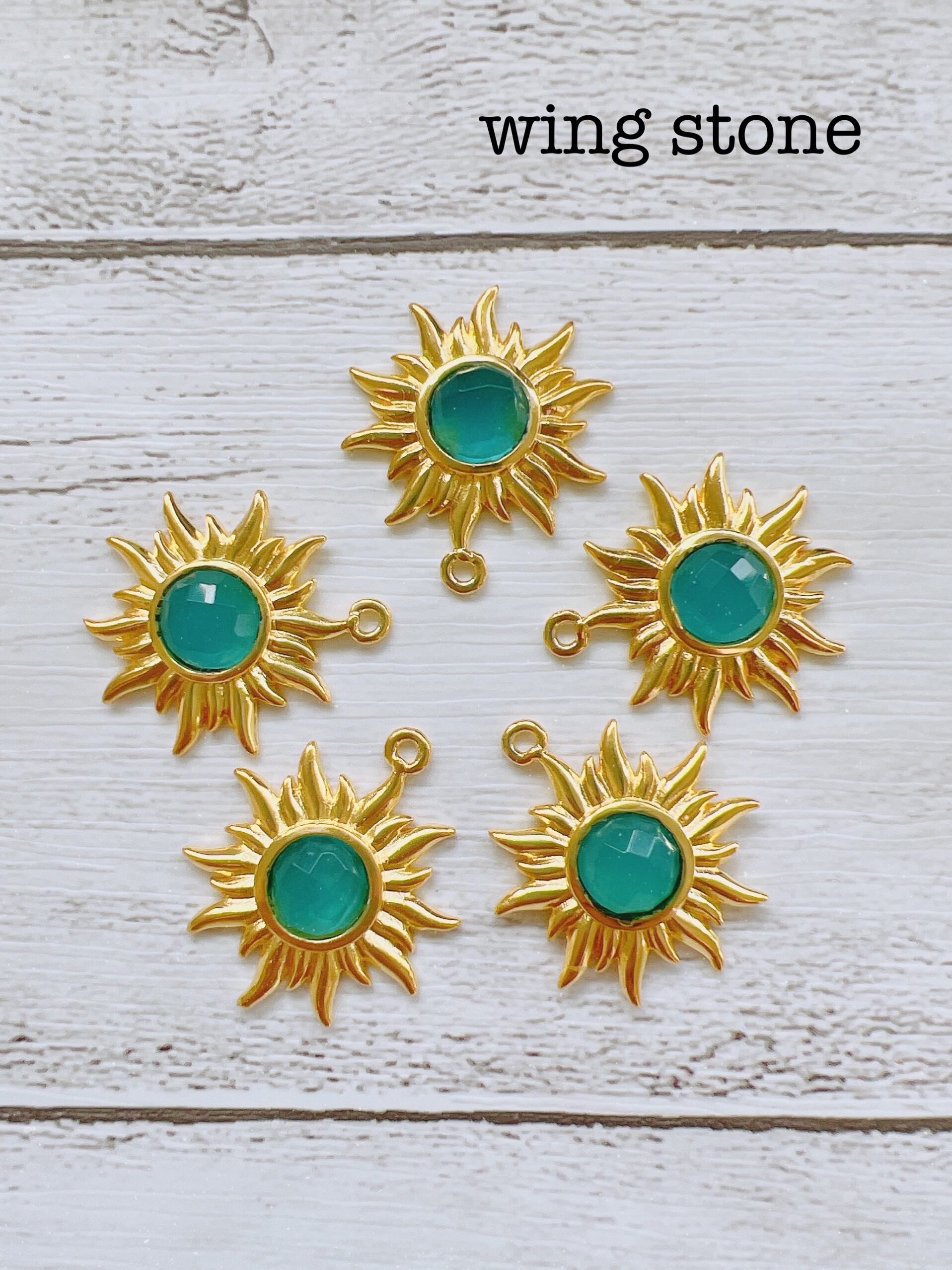 チャームなどと組み合わせるのも可愛いですが、こちらのパーツだけで印象に残るオシャレなアクセサリーになるところが、太陽型天然石パーツの魅力です!!