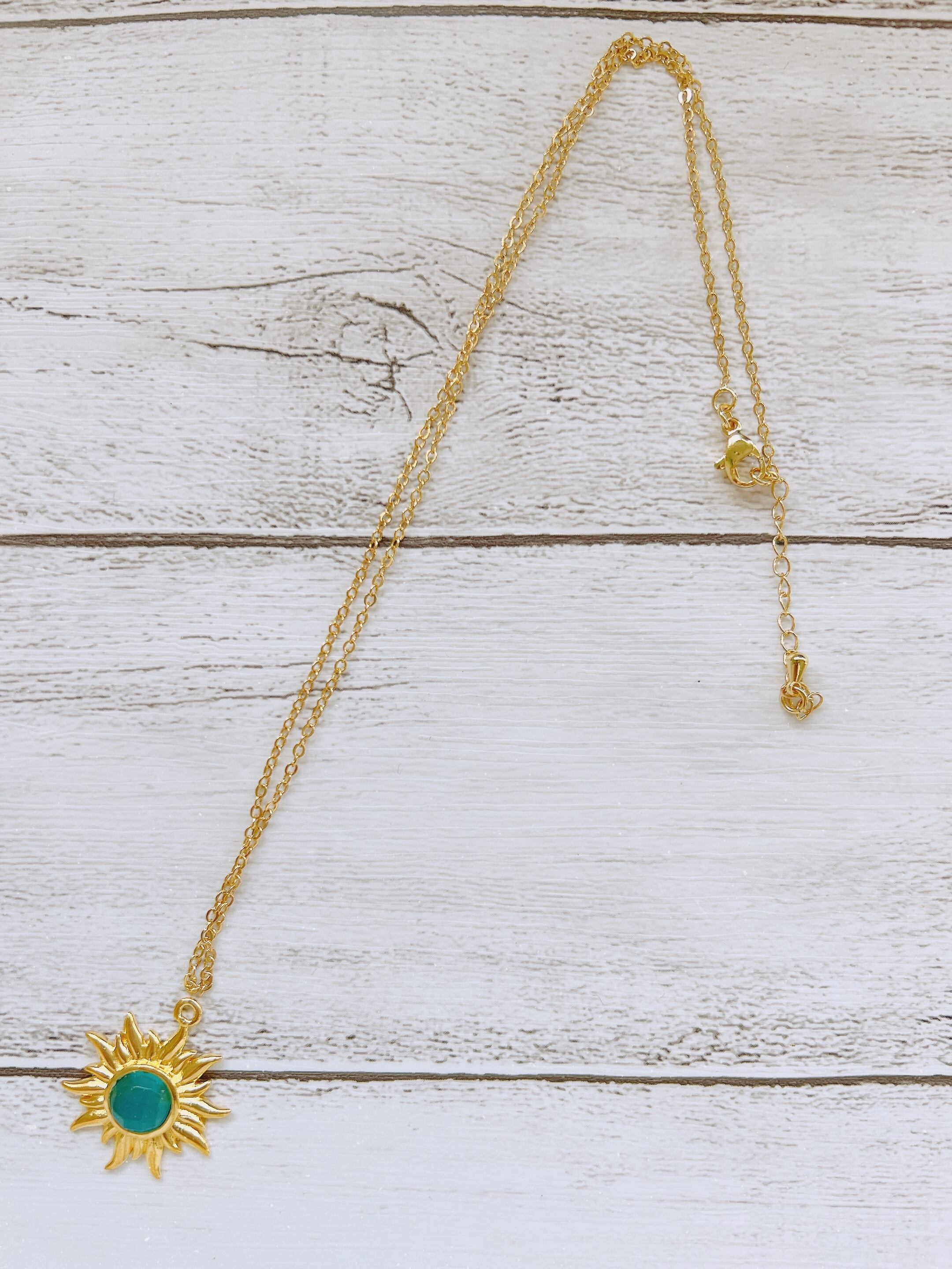 太陽型のパーツに丸型のブルーキャッツアイを埋め込んだ天然石パーツです。