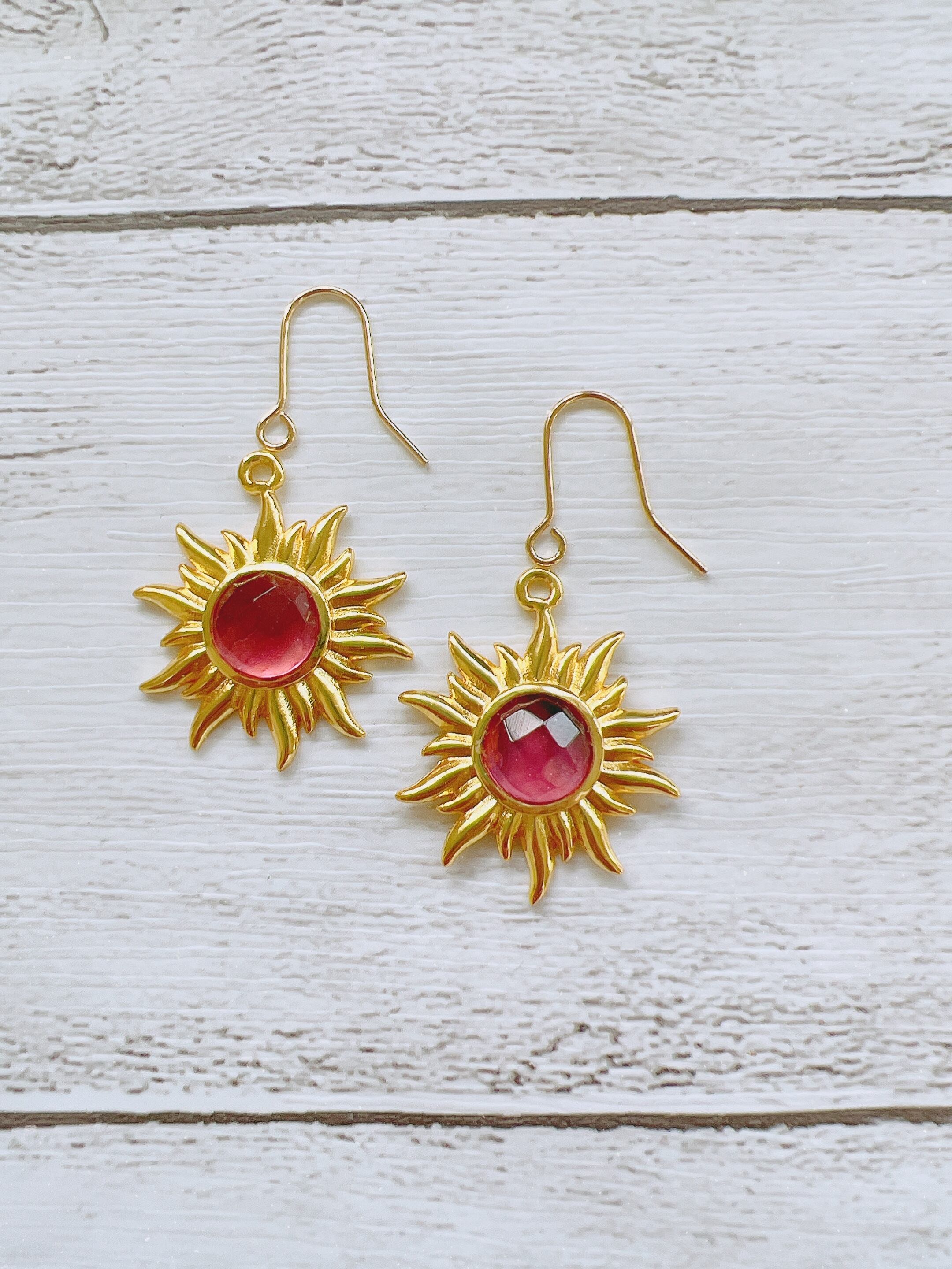 太陽型のパーツに丸型のルビーレッドクォーツを埋め込んだ天然石パーツです。