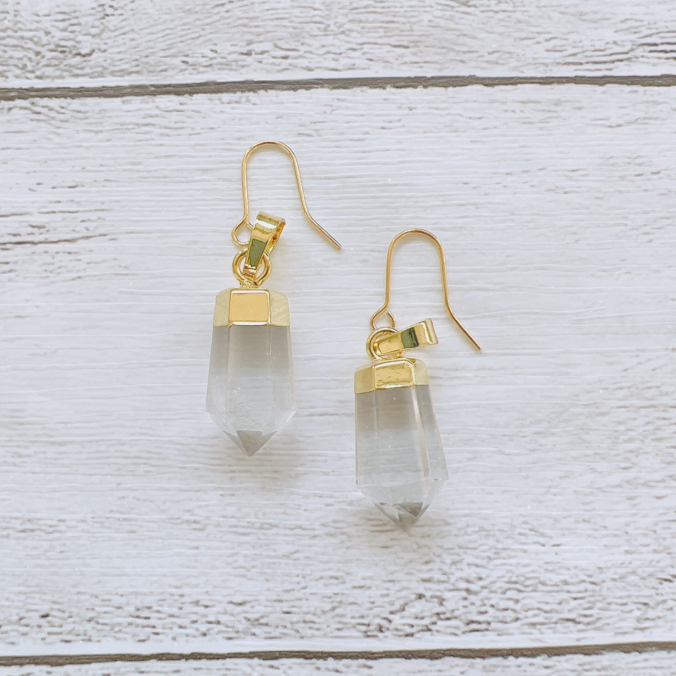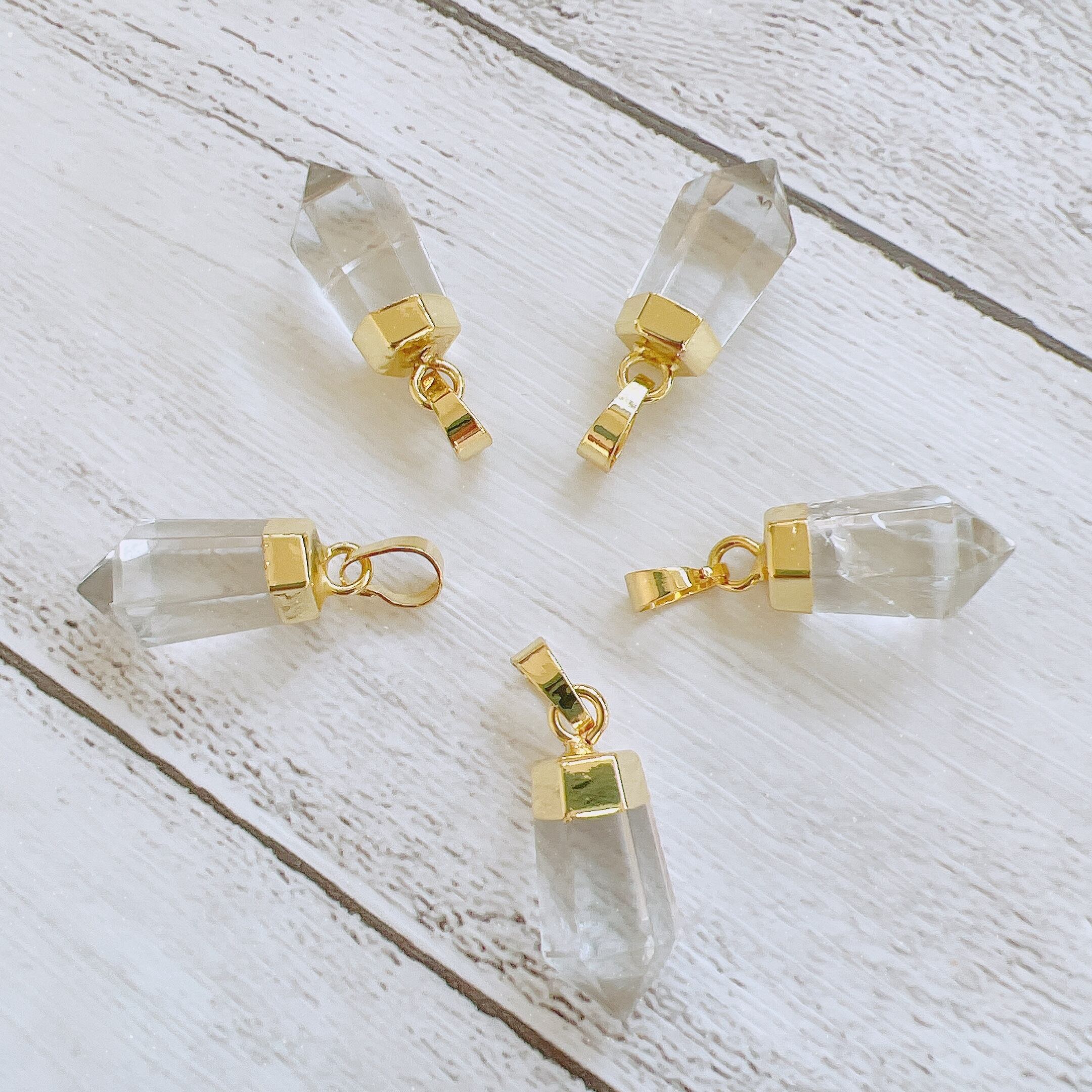 約2㎝サイズのハンドメイドしやすいサイズ感で、ピアスやペンダントトップとしてお使いいただくと、シンプルで清潔感のあるアクセサリーになります。クォーツは、年間通してお使い頂け人気の高い天然石です。